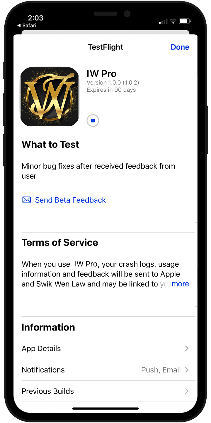 Testflight will redirect to the "INFINI BoxTower" page and click install.